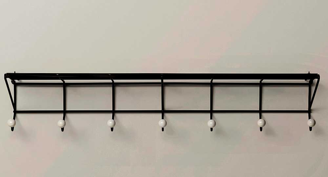 „Wenn die Form nicht zur Funktionalität beiträgt, hat sie keine Existenzberechtigung“. Friso Kramer (1922-2019)Friso Kramer war ein niederländischer Industriedesigner, bekannt für seine unprätentiösen Arbeiten. Seine Büromöbel, Stühle und auch Strassenbeleuchtungen sind heute noch an vielen Orten allgegenwärtig. Kramers Entwürfe sind funktional, zeitlos und innovativ. Seine Arbeiten sind bis heute stilvoll und von einzigartiger Relevanz. 1954 entstand unter den Händen von Friso Kramer die Garderobe Dz05. Funktion und Leichtigkeit lassen die Wandgarderobe mit ihren feinen Linien wie auf die Wand hingezeichnet aussehen. Die Wandgarderobe verfügt über eine Hutablage und bietet sieben weisse Knöpfe für Kleiderbügel oder eine direkte Aufhängung. Masse: 91cm x 17cm x 27cm (BxTxH) Material: Stahl epoxidbeschichtet in zwei Farben erhältlich: gelb und schwarz.